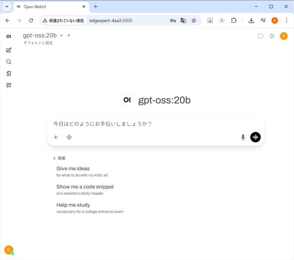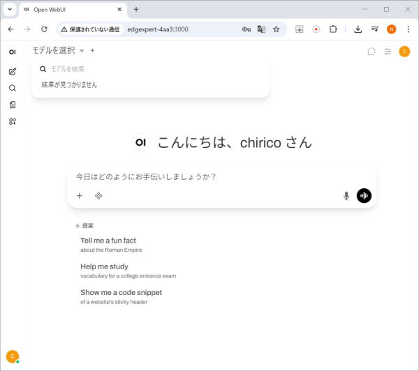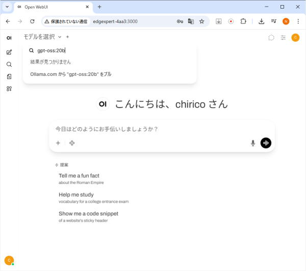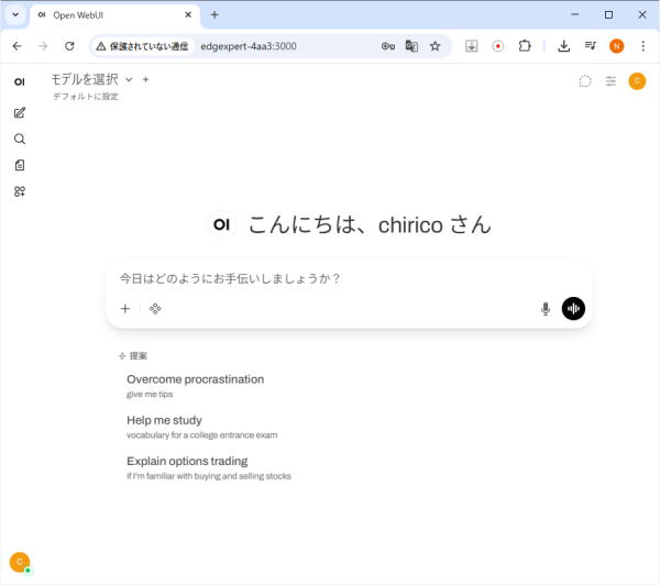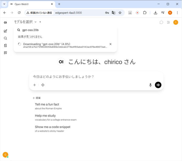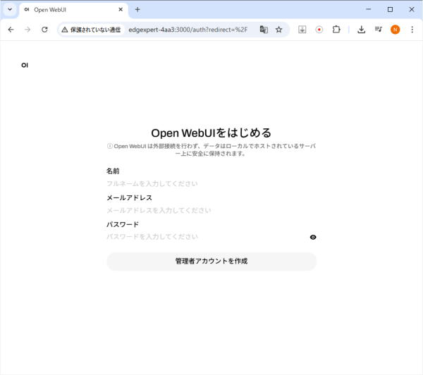 (「Open WebUIは外部接続は行わず、データはローカルでホストされているサーバー上に安全に保持されます。」