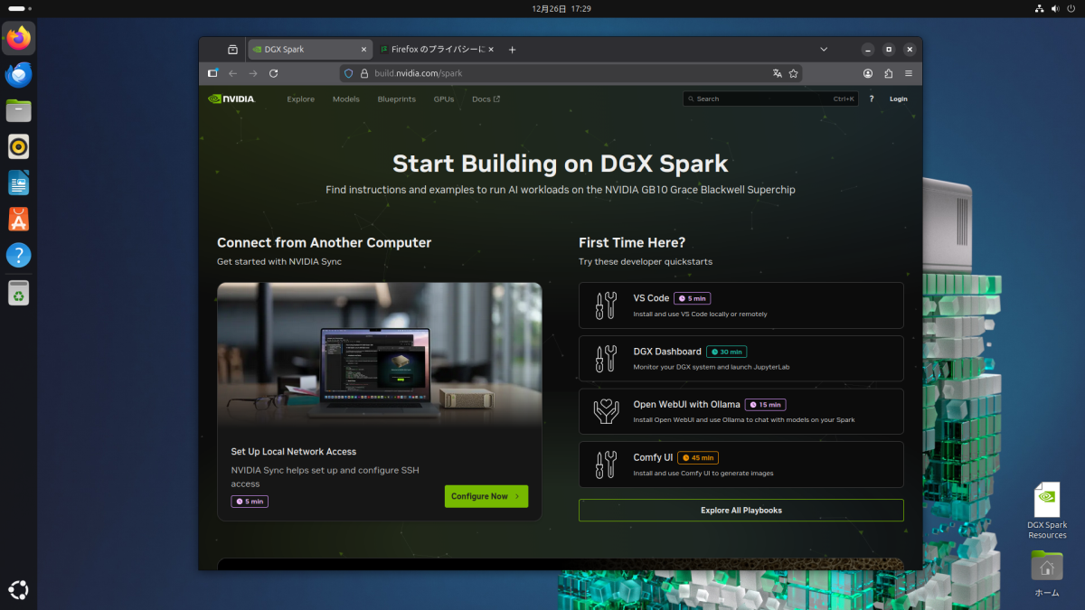 - 初めて DGX Spark を起動し、しばらくすると、Welcome画面が表示されます。