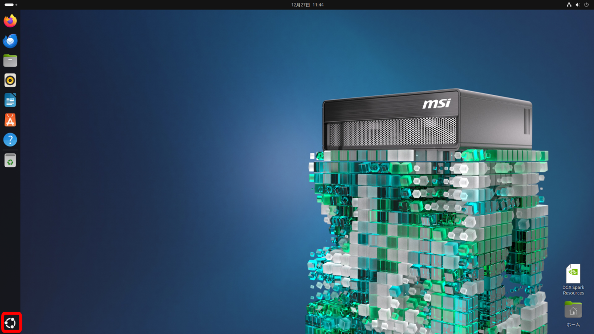 デスクトップ左下の「アプリを表示」ボタンをクリックします。