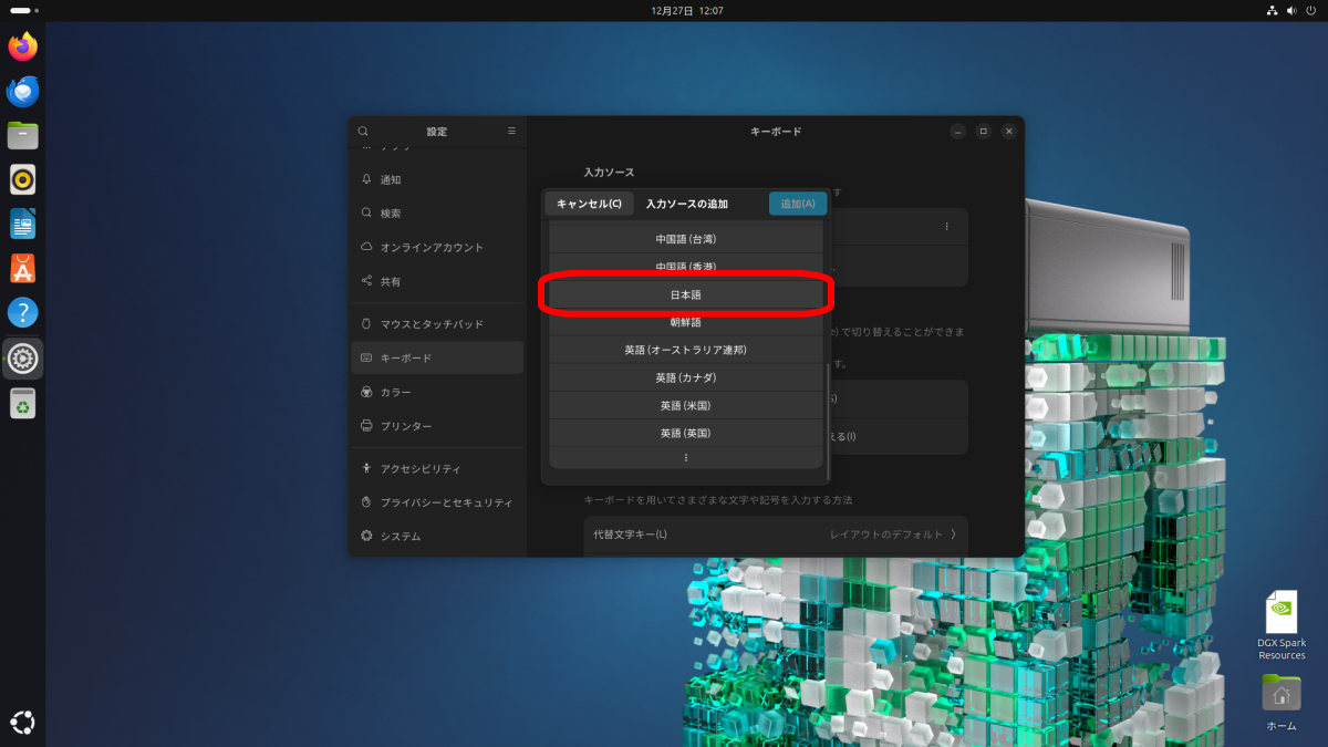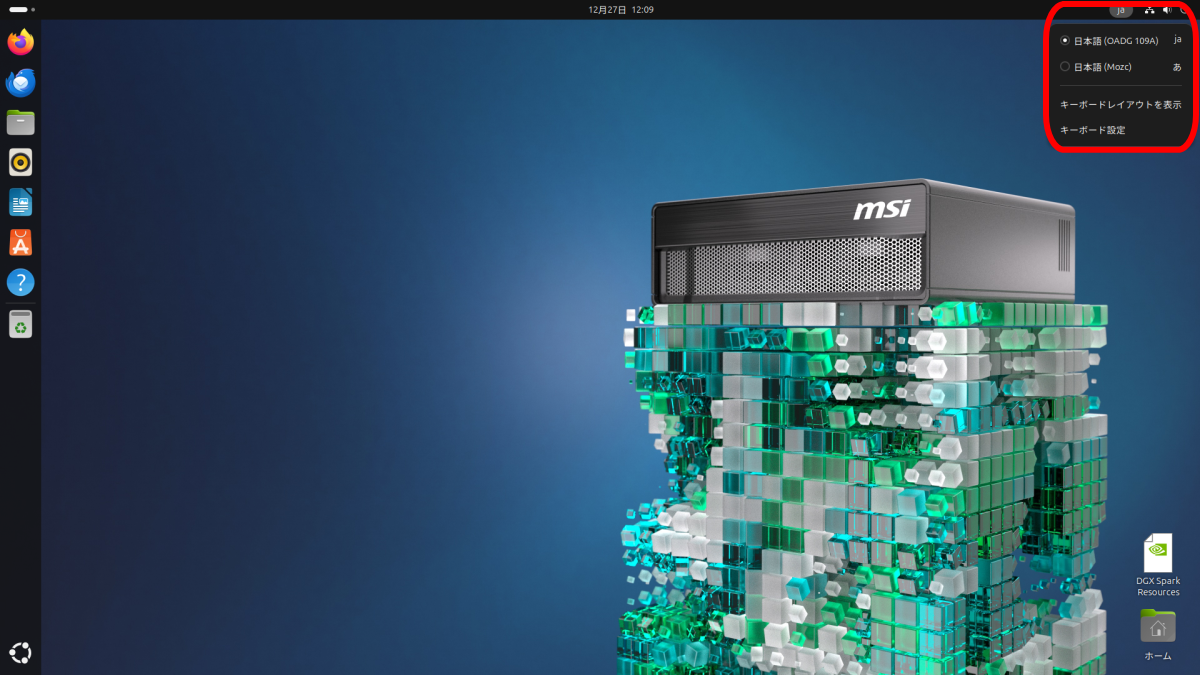 表示されるメニューから「日本語 (Mozc)」をクリックし、選択します。