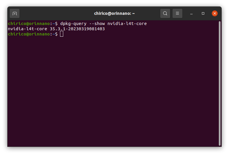Jetson Linux のバージョンを確認するには、以下のコマンドを実行します。