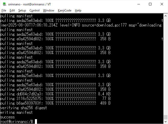 - 起動したコンテナに「l4t-ml-ollama-dev」という名前を付けておきます。後ほどDockerイメージ化するときに付けた名前を使用します。