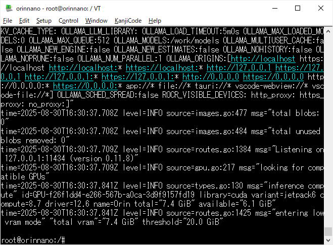 起動したコンテナ上で、Ollamaの動作環境を構築し、Dockerイメージ化し再利用します。そのために「--rm」オプションは付けません。 - nvcr.io/nvidia/l4t-ml:r36.2.0-py3