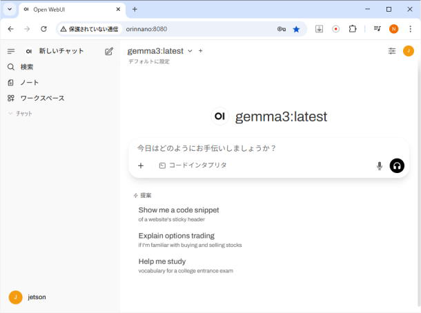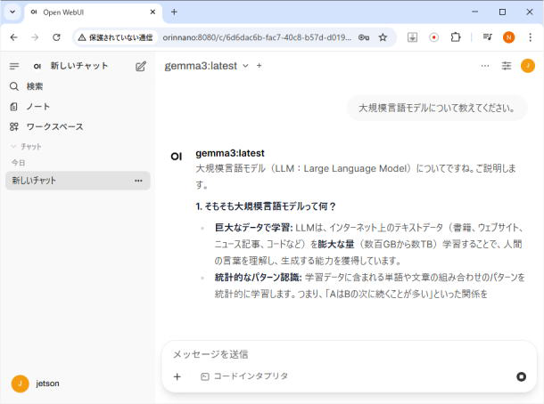 Jetson Orin Nano に、Open-WebUI の動作環境を構築する方法についてまとめます。