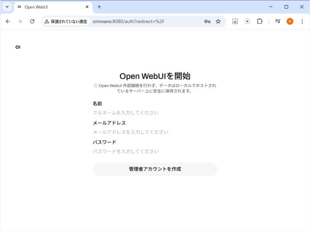 (「Open WebUIは外部接続は行わず、データはローカルでホストされているサーバー上に安全に保持されます。」