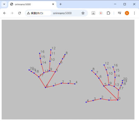 Webカメラ画像は表示されず、手の形の推定のみ表示されます。