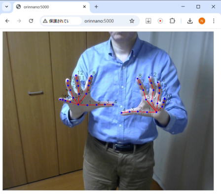 Webカメラ画像は表示されず、手の形の推定のみ表示されます。