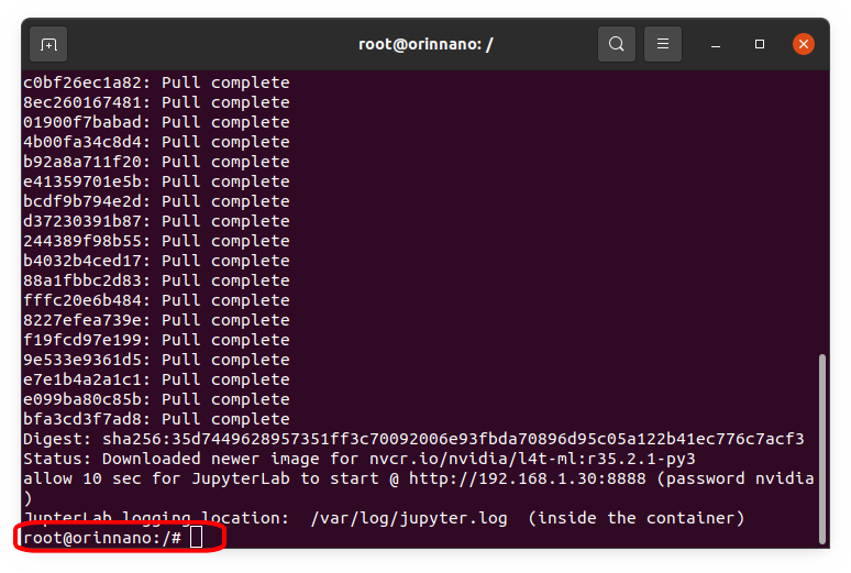 Linux のバージョン 35.2.1 、JetPackのバージョン 5.1 の場合のコンテナタグ「r35.2.1-py3」を使用します。