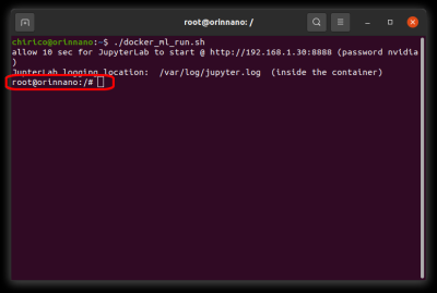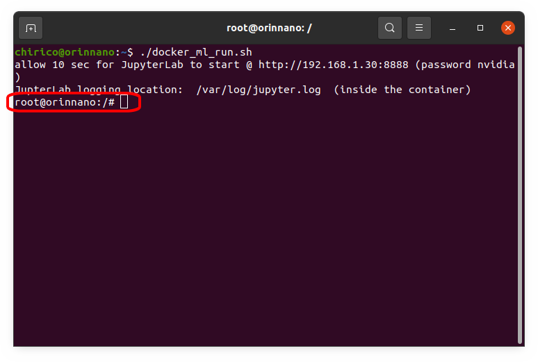以下のコマンドを実行し、「L4T ML」コンテナを起動します。