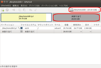 「GParted」のメイン画面に戻ります。