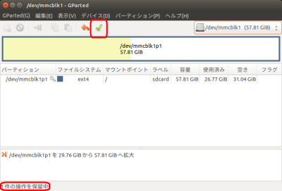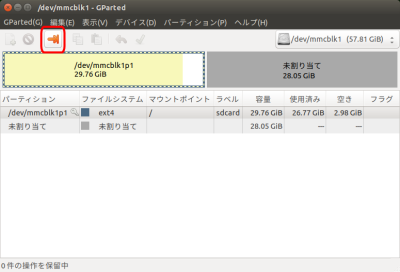 移行先microSDカードの未使用領域を既存のルートディスク(「/」ディスク)のリサイズにより割り当て