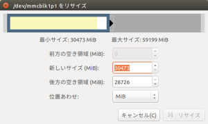 「パーティションのリサイズ」ウインドウが表示されます。