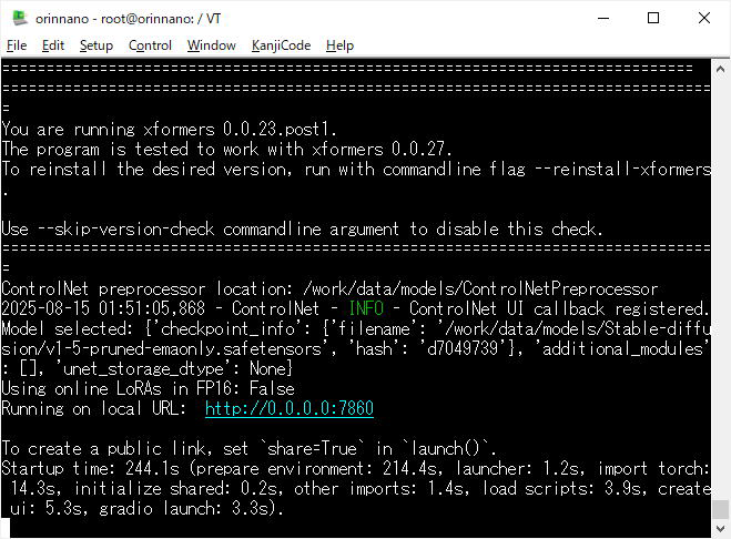 構築した Stable Diffusion の動作環境のコンテナが起動します。
