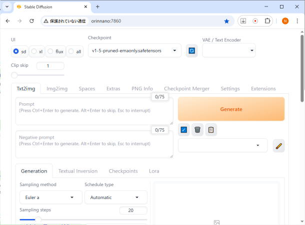 Stable Diffusion WebUI (Forge版) の画面が表示されます。