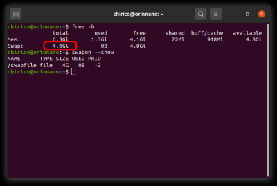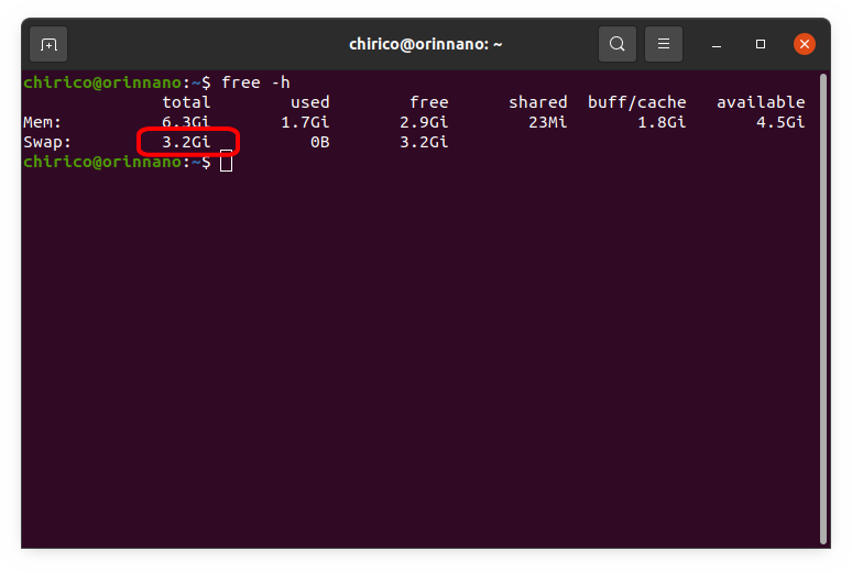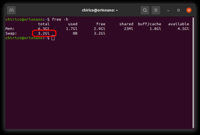この Jetson Orin Nano は、初期設定のスワップ領域として、3.2GBのスワップ領域が設定されています。