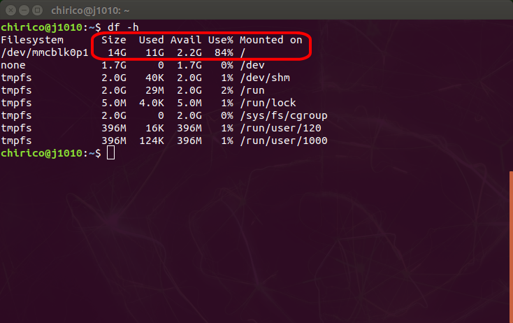 ディスクの空き容量を確認するには、以下のコマンドを実行します。