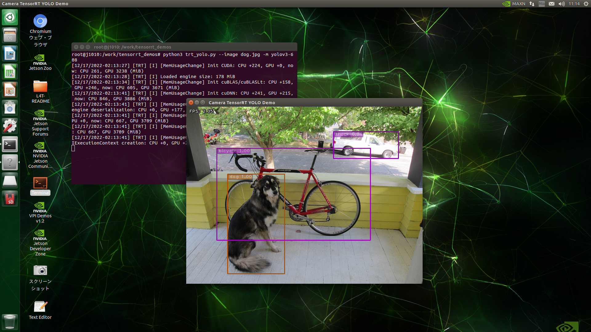 以下のコマンドを実行し、「tensorrt_demos」ディレクトリに移動します。