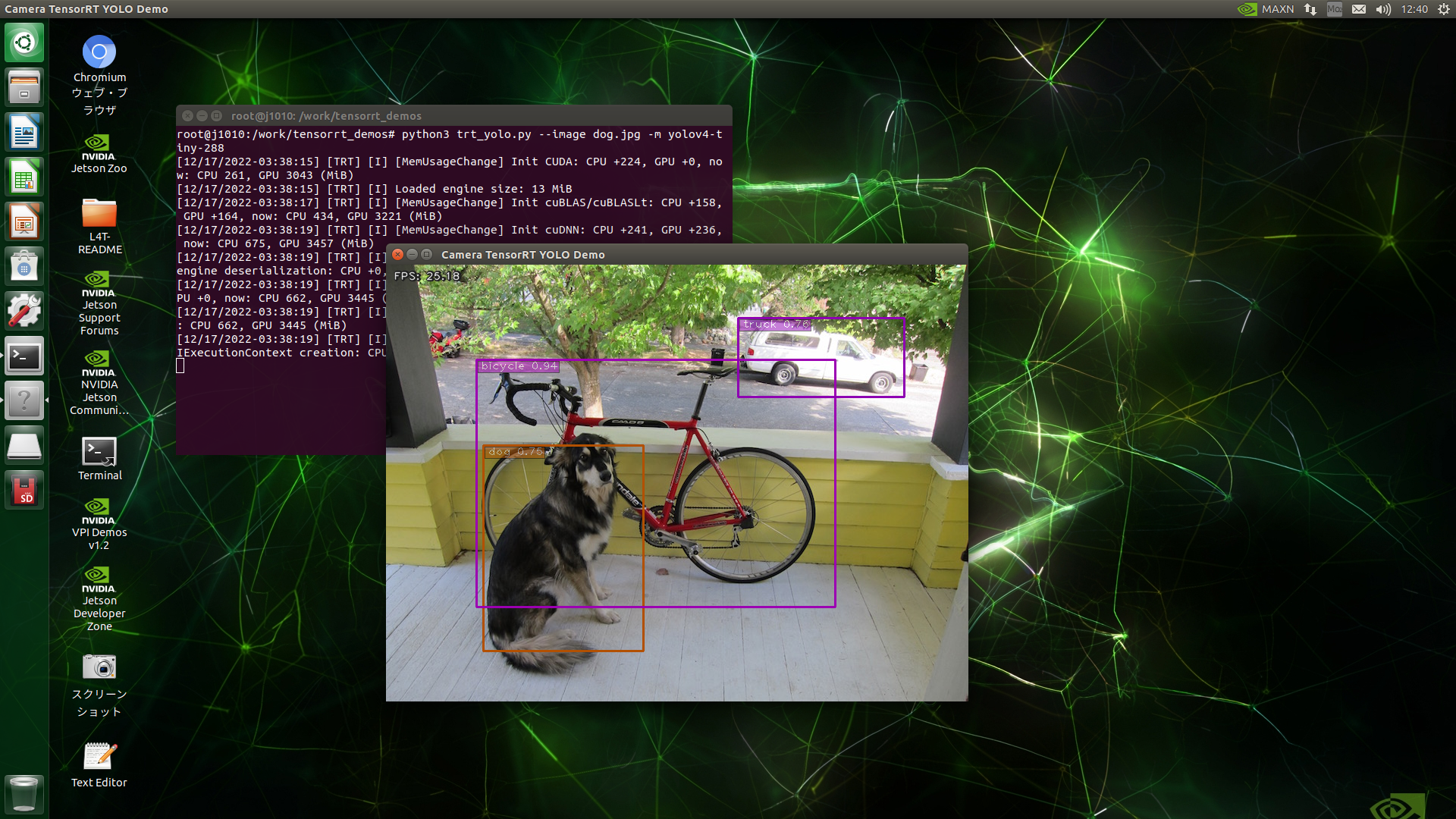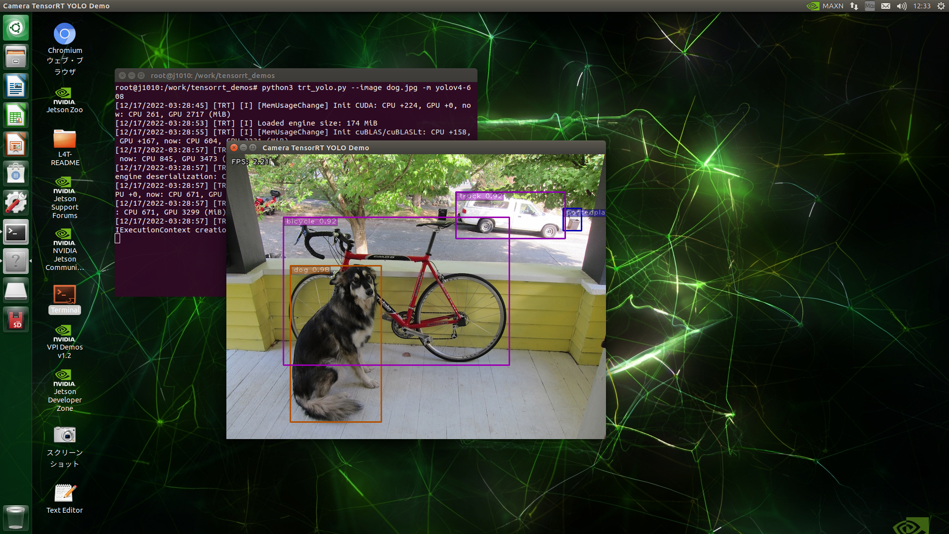 GitHubで公開されている「ONNX TensorRTを用いた物体検出」を様々なバージョンのYOLOで試すことができるデモである「jkjung-avt / tensorrt_demos」の「Demo #5: YOLOv4」を試してみます。