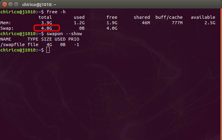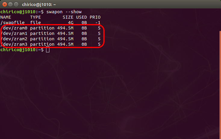 ZRAMが無効化され、スワップ領域のサイズは、4GBになりました。