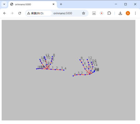 Webカメラ画像は表示されず、手の形の推定のみ表示されます。