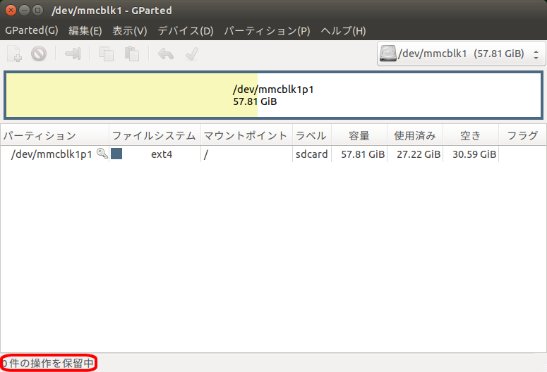 「GParted」のメイン画面に戻ります。