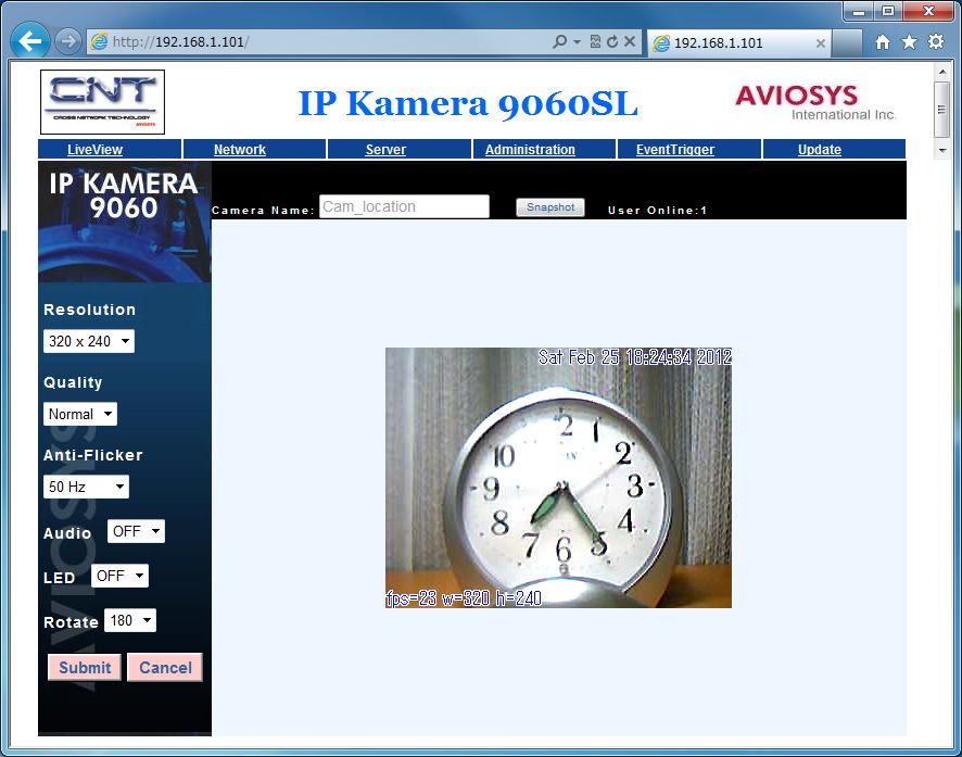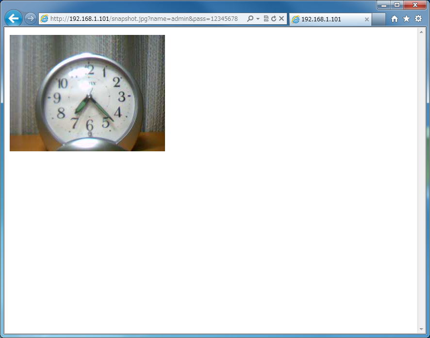 ウェブブラウザのウィンドウの左上にカメラが撮影した1枚の画像が表示されることを確認します。