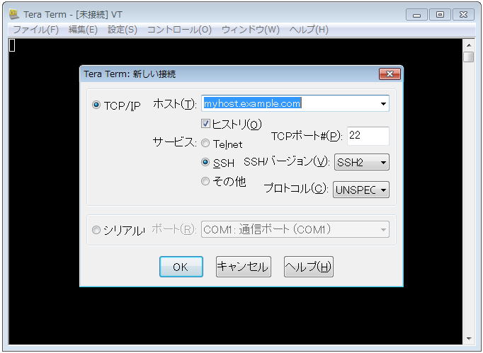 TeraTermの起動、そしてSSH通信の接続