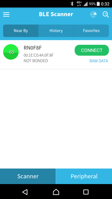 「CONNECT」ボタンをタップし、検出されたRN4020と接続します。