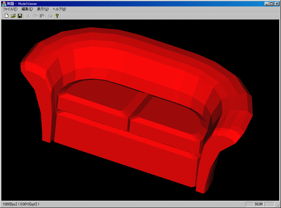 実行し、couch.objファイルを読み込み、面の折れを目が立たない描画になっているのを確認します。